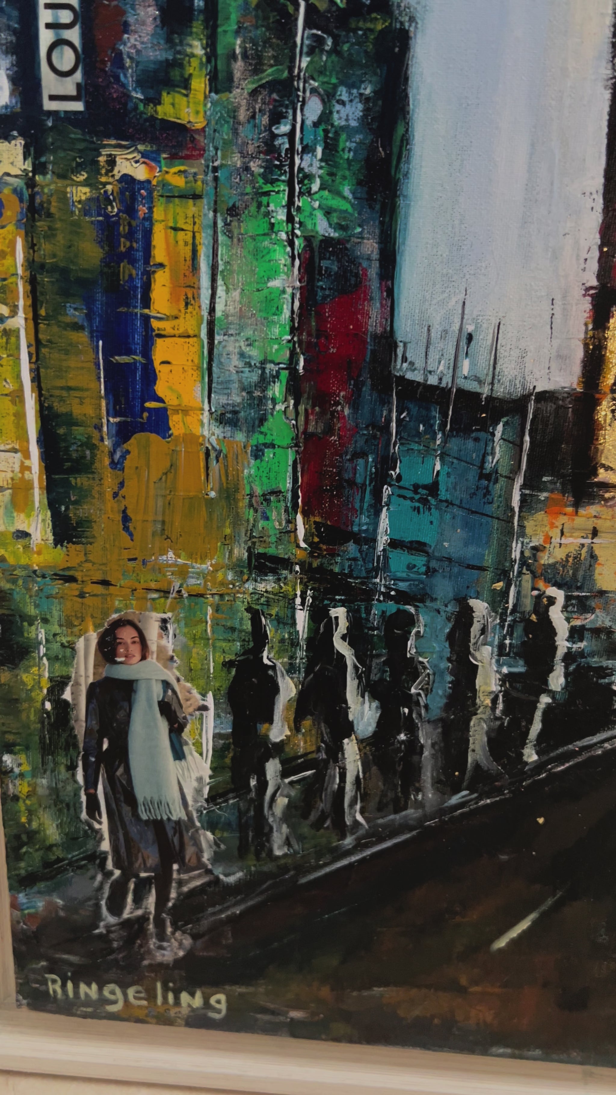 Lienzo al acrílico, collage 54x65 Cm.